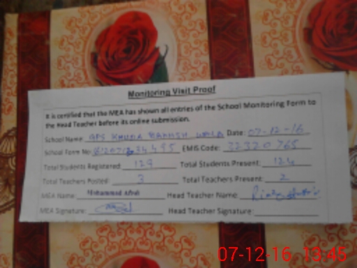 | EMIS Code: 32320765 | Name of School: GPS KHUDA BAKHSH WALA | |||