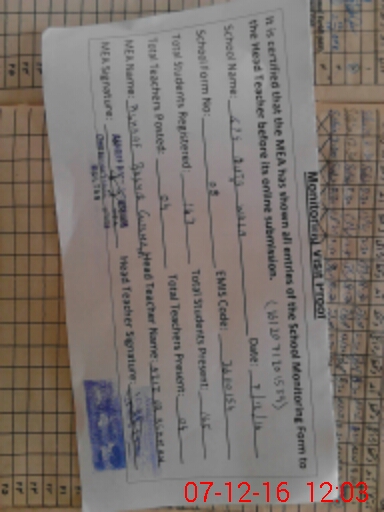 | Certified that this School was Inspected by the Undersigned MEA/DMO Today and the Information Stated Above is as Per Record. | |||||