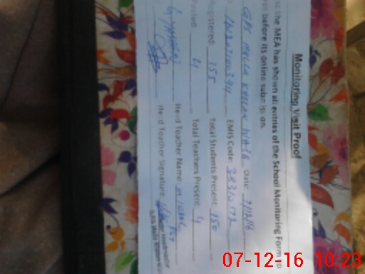 | Attendance Register | Head Teacher | MEA with School | Visit Proof |