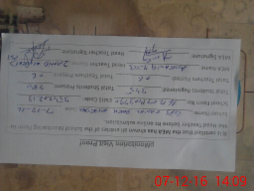 | Attendance Register | Head Teacher | MEA with School | Visit Proof |