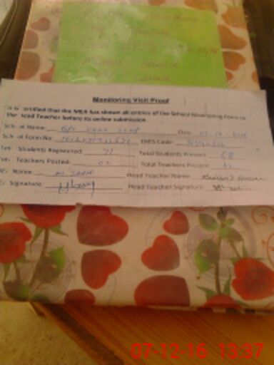 | Attendance Register | Head Teacher | MEA with School | Visit Proof |