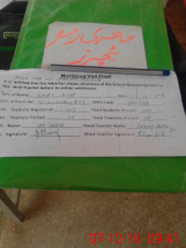 | Attendance Register | Head Teacher | MEA with School | Visit Proof |