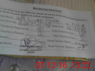 | Attendance Register | Head Teacher | MEA with School | Visit Proof |
