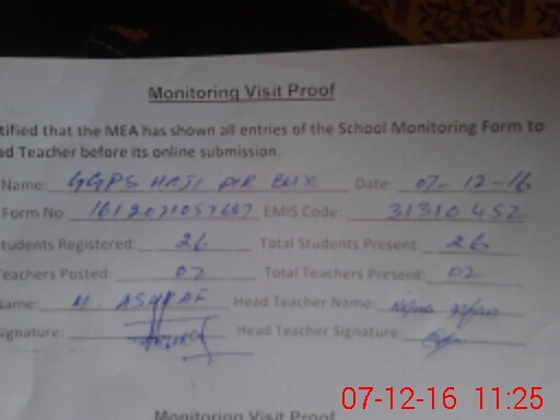 | EMIS Code: 31310452 | Name of School: GGPS HAJI PEER BUKHSH | |||