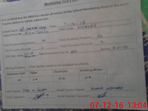 | Certified that this School was Inspected by the Undersigned MEA/DMO Today and the Information Stated Above is as Per Record. | |||||