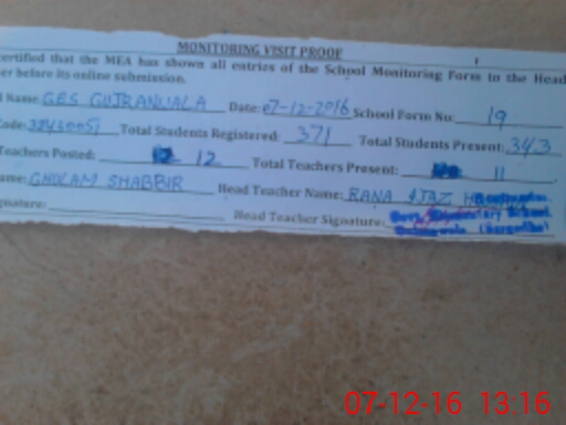 | EMIS Code: 38430051 | Name of School: GES GUJRAN WALA | |||
