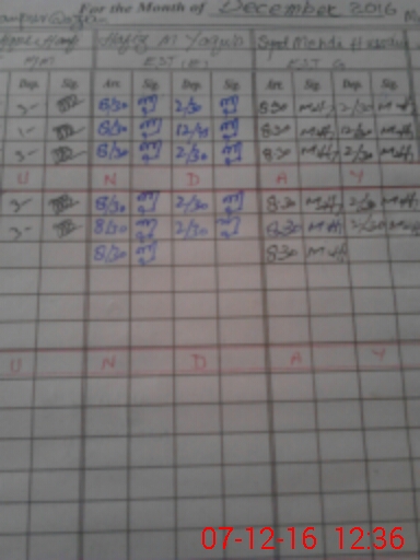 | CNIC | Full Name | Designation | R/C | Absence During Last Calender Month |