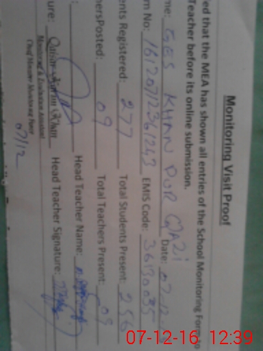 | EMIS Code: 36120035 | Name of School: GES KHANPUR QAZIAN SHUJABAD | |||