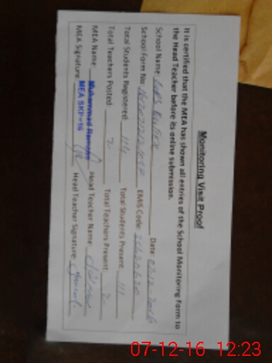 | Certified that this School was Inspected by the Undersigned MEA/DMO Today and the Information Stated Above is as Per Record. | |||||