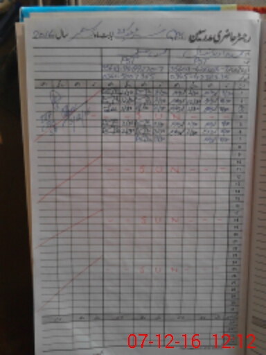 | CNIC | Full Name | Designation | R/C | Absence During Last Calender Month |