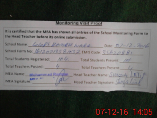 | Certified that this School was Inspected by the Undersigned MEA/DMO Today and the Information Stated Above is as Per Record. | |||||