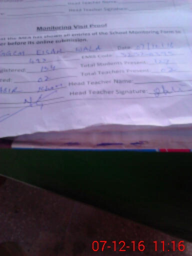 | Attendance Register | Head Teacher | MEA with School | Visit Proof |
