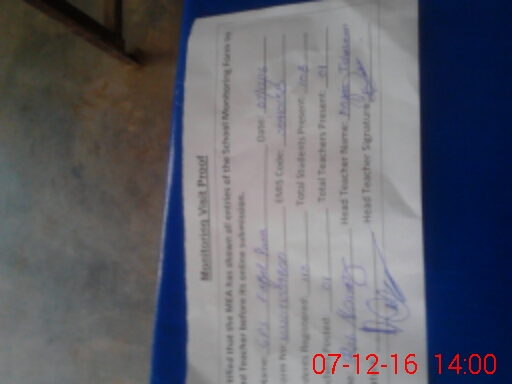 | Attendance Register | Head Teacher | MEA with School | Visit Proof |