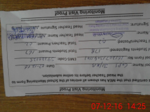 | Attendance Register | Head Teacher | MEA with School | Visit Proof |