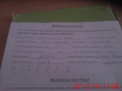 | Attendance Register | Head Teacher | MEA with School | Visit Proof |