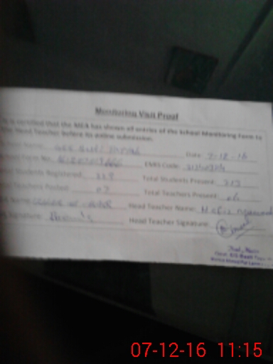 | Attendance Register | Head Teacher | MEA with School | Visit Proof |
