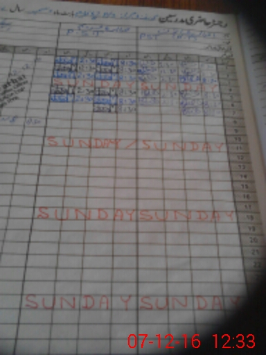 | CNIC | Full Name | Designation | R/C | Absence During Last Calender Month |