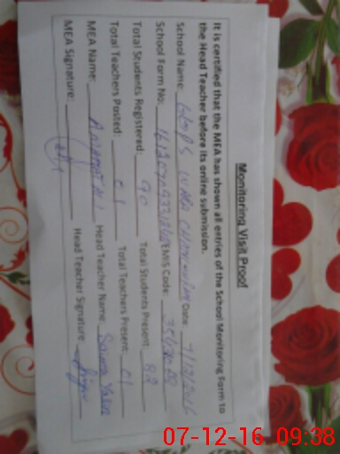 | Certified that this School was Inspected by the Undersigned MEA/DMO Today and the Information Stated Above is as Per Record. | |||||