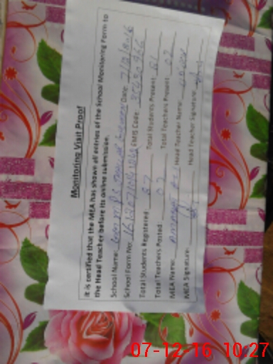 | Certified that this School was Inspected by the Undersigned MEA/DMO Today and the Information Stated Above is as Per Record. | |||||