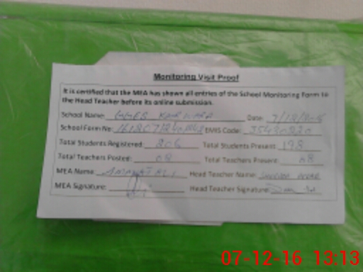 | Attendance Register | Head Teacher | MEA with School | Visit Proof |