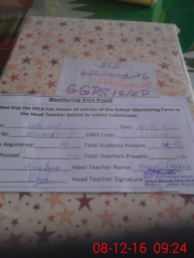 | Attendance Register | Head Teacher | MEA with School | Visit Proof |