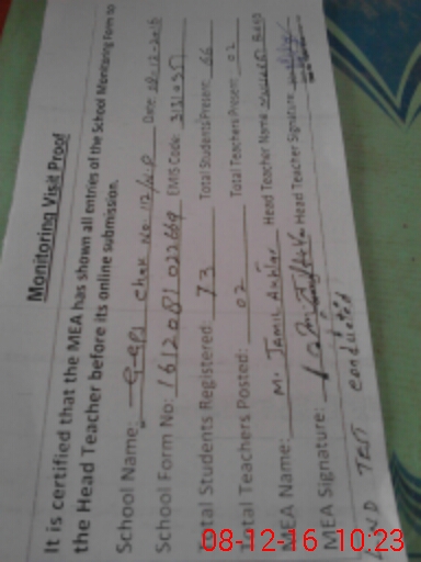 | Certified that this School was Inspected by the Undersigned MEA/DMO Today and the Information Stated Above is as Per Record. | |||||