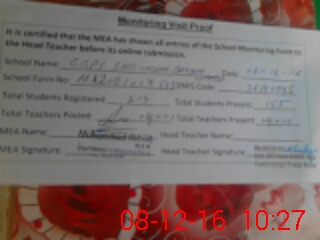 | Attendance Register | Head Teacher | MEA with School | Visit Proof |