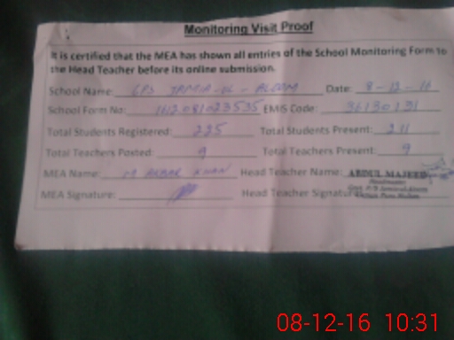 | Certified that this School was Inspected by the Undersigned MEA/DMO Today and the Information Stated Above is as Per Record. | |||||