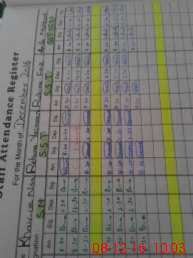 | CNIC | Full Name | Designation | R/C | Absence During Last Calender Month |