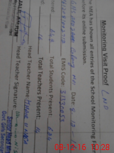 | Attendance Register | Head Teacher | MEA with School | Visit Proof |