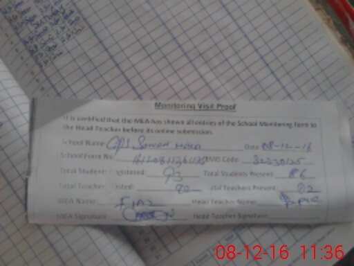 | Attendance Register | Head Teacher | MEA with School | Visit Proof |