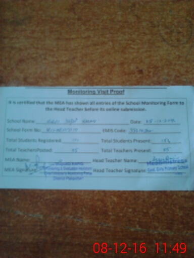 | Certified that this School was Inspected by the Undersigned MEA/DMO Today and the Information Stated Above is as Per Record. | |||||