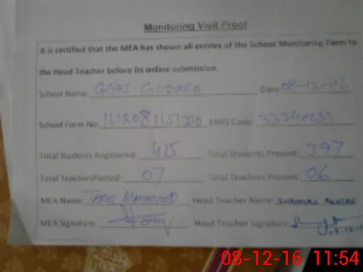 | EMIS Code: 33240033 | Name of School: GGHS GUDARA | |||