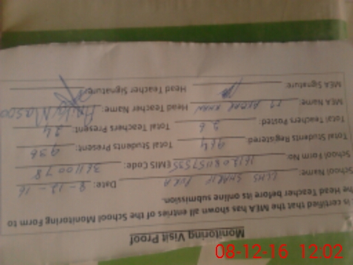 | Certified that this School was Inspected by the Undersigned MEA/DMO Today and the Information Stated Above is as Per Record. | |||||