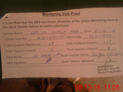 | EMIS Code: 36110382 | Name of School: GGPS MC SHAREEF PURA | |||