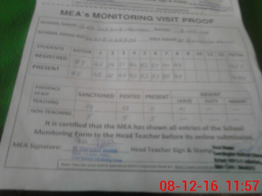 | Certified that this School was Inspected by the Undersigned MEA/DMO Today and the Information Stated Above is as Per Record. | |||||