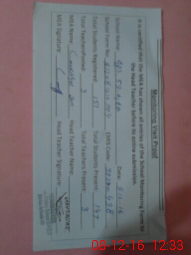 | Certified that this School was Inspected by the Undersigned MEA/DMO Today and the Information Stated Above is as Per Record. | |||||