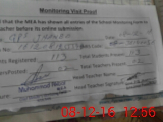 | Attendance Register | Head Teacher | MEA with School | Visit Proof |