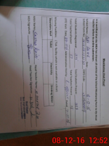 | Certified that this School was Inspected by the Undersigned MEA/DMO Today and the Information Stated Above is as Per Record. | |||||