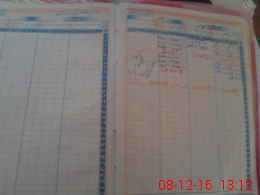 | CNIC | Full Name | Designation | R/C | Absence During Last Calender Month |