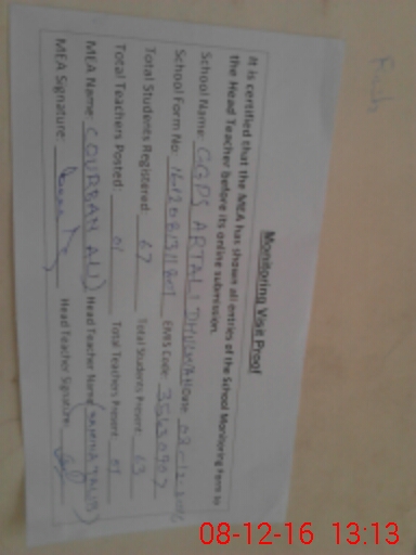 | EMIS Code: 35430907 | Name of School: GGPS ARTALI DHULWAN | |||