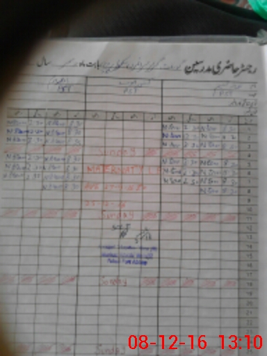 | CNIC | Full Name | Designation | R/C | Absence During Last Calender Month |