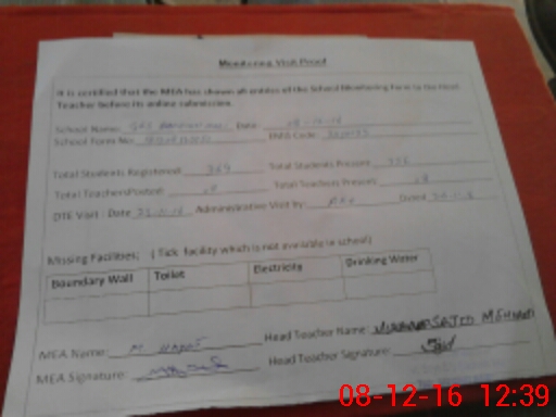 | Attendance Register | Head Teacher | MEA with School | Visit Proof |