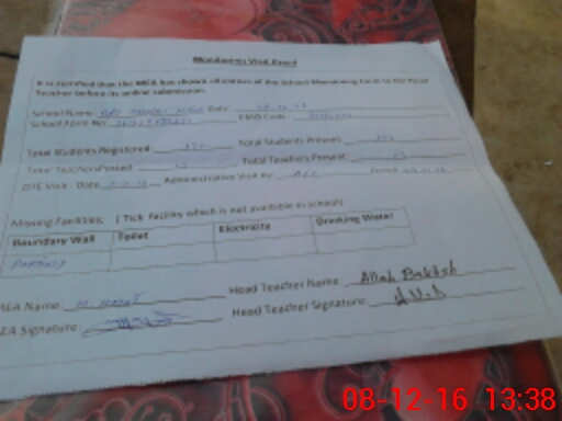 | Certified that this School was Inspected by the Undersigned MEA/DMO Today and the Information Stated Above is as Per Record. | |||||