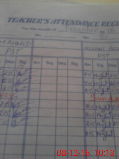 | Name: IR**** AH**** Designation: (School Headmaster's/Headmistress's) PST Phone/Cell Number: 03**** |