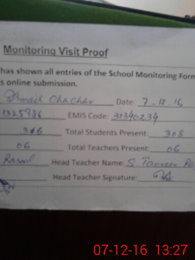 | Certified that this School was Inspected by the Undersigned MEA/DMO Today and the Information Stated Above is as Per Record. | |||||