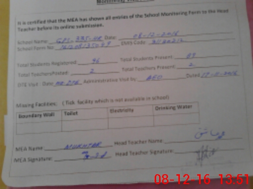 | Certified that this School was Inspected by the Undersigned MEA/DMO Today and the Information Stated Above is as Per Record. | |||||