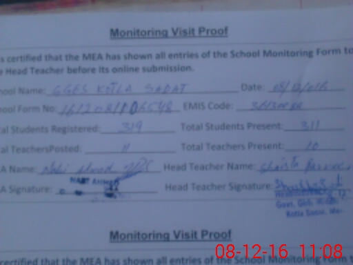 | Attendance Register | Head Teacher | MEA with School | Visit Proof |
