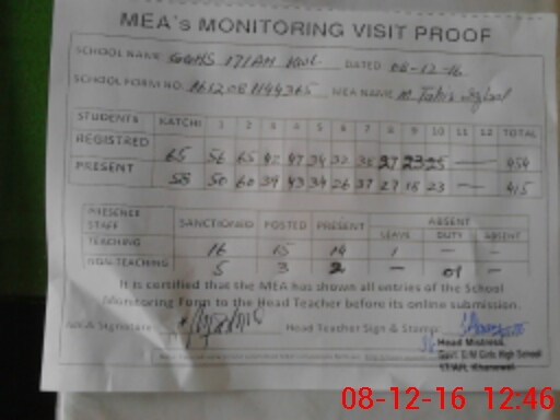 | Certified that this School was Inspected by the Undersigned MEA/DMO Today and the Information Stated Above is as Per Record. | |||||