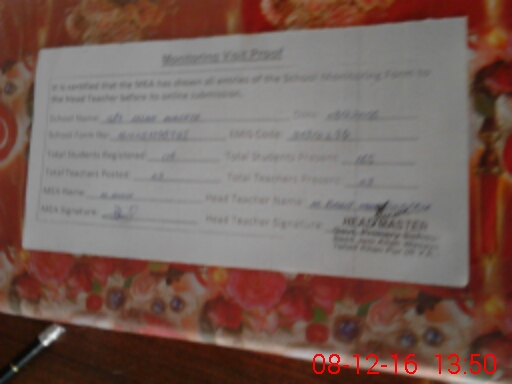 | Attendance Register | Head Teacher | MEA with School | Visit Proof |
